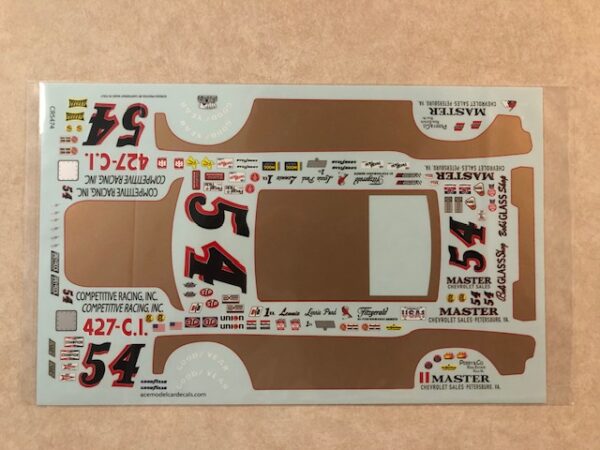 All Brand new designed sheet to replace the crappy kit decals. For the AMT Lennie Pond Gold #54 Master Cheverolet Chevelle. 1/25 scale.